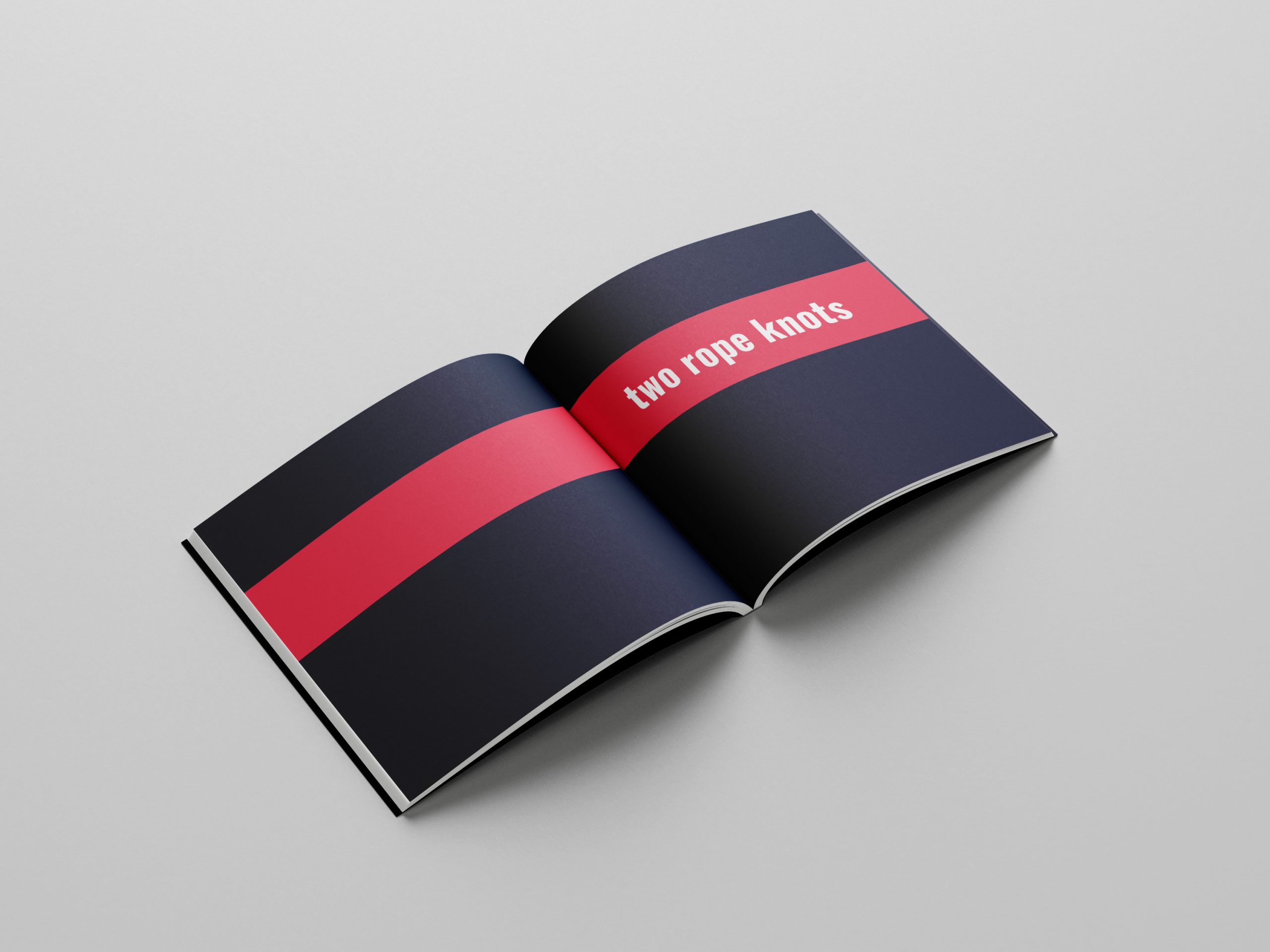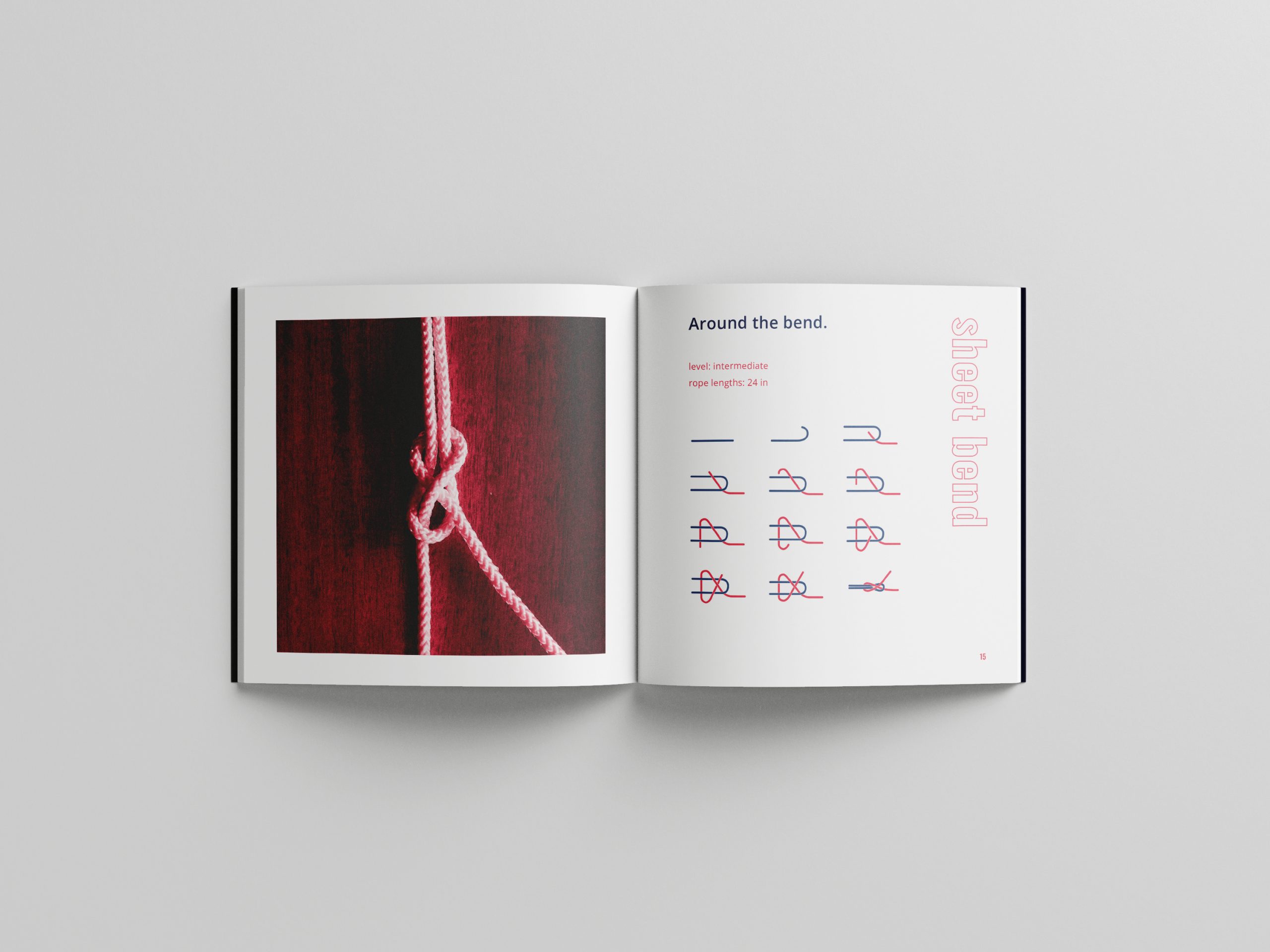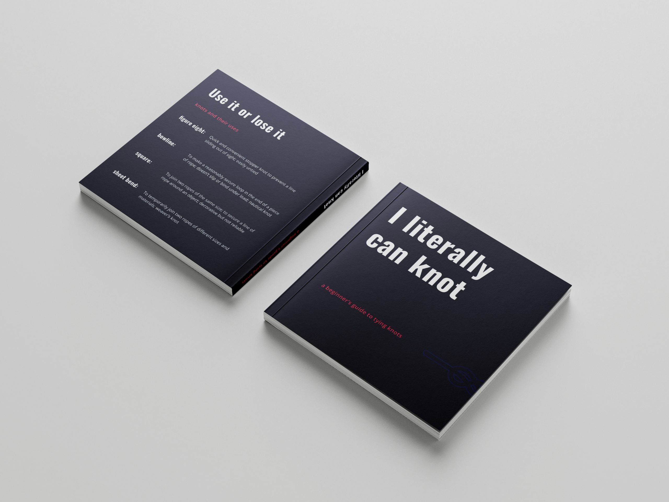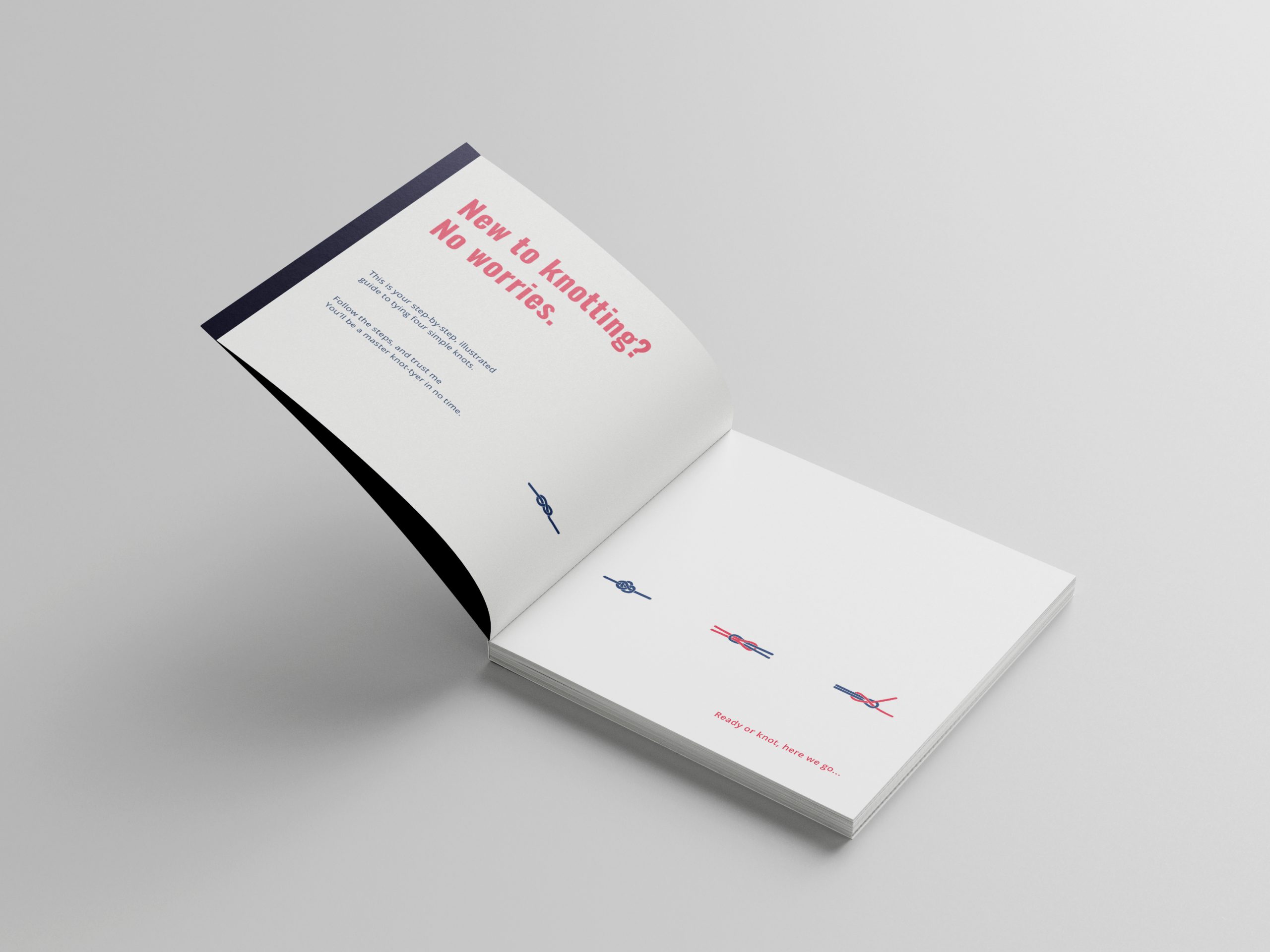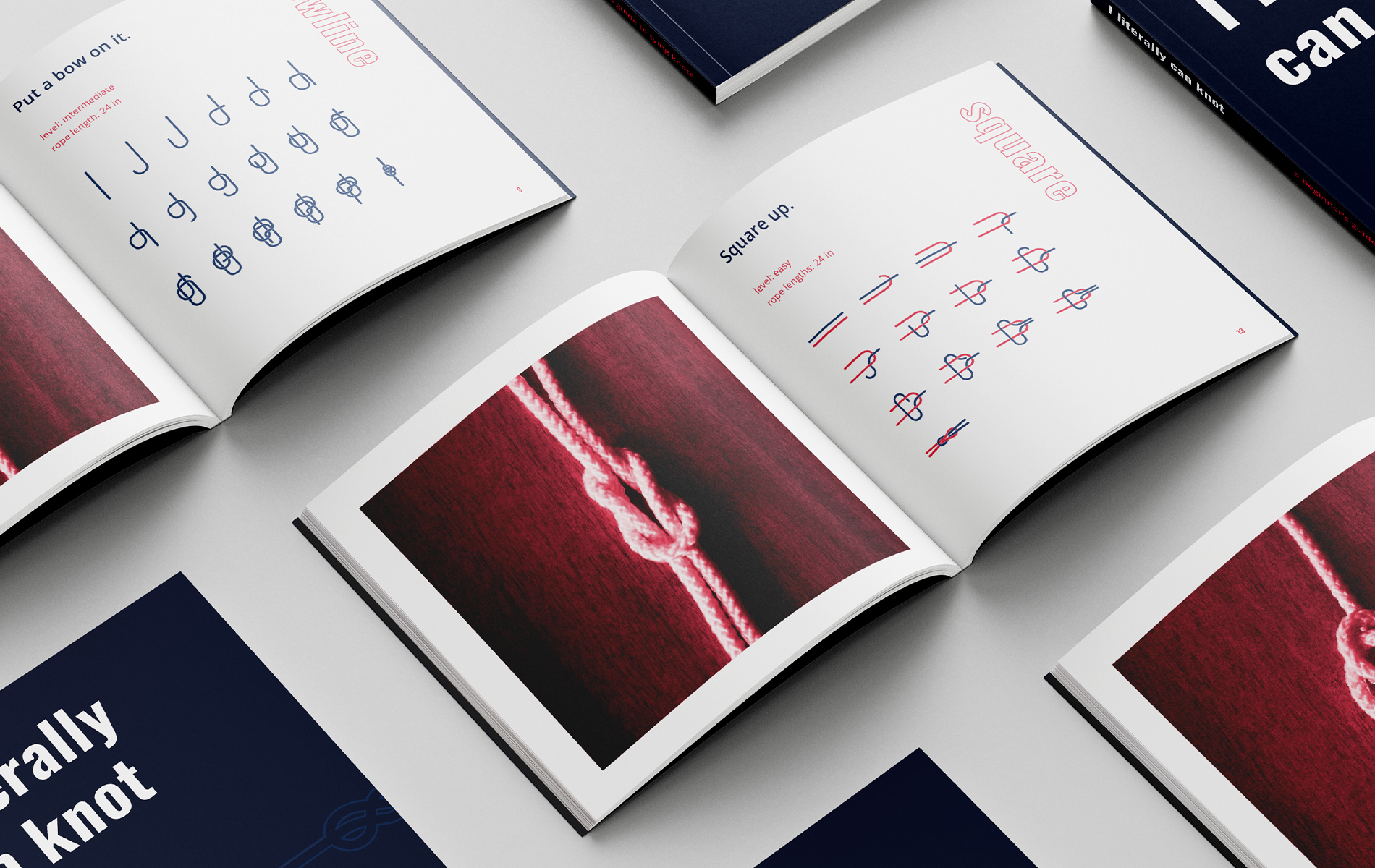 This project features step-by-step diagrams for tying four different knots. The diagrams rely solely on visual guidance, allowing the knots to speak for themselves and intuitively lead viewers through each process. The diagrams were later compiled into a booklet, presenting the knots in a practical, easy-to-use format. A quippy, lighthearted tone adds a playful touch, transforming the everyday task of knot-tying into an engaging and enjoyable experience.