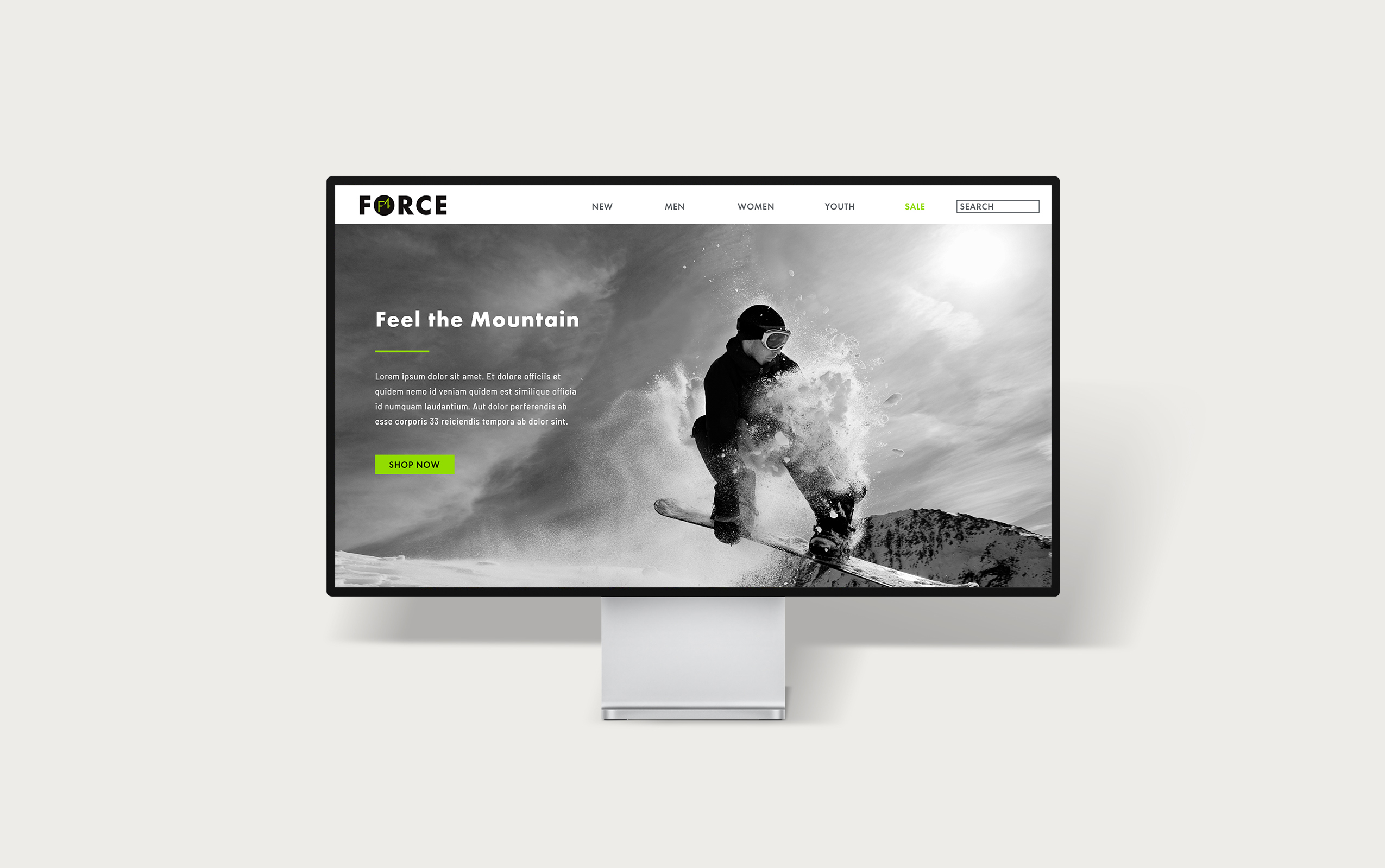 FORCE is a simple yet striking brand designed to inspire the inner adventurer. Bold colors and sleek typography create an active, high-energy feel, while the name itself invites snowboarders to tap into the power and intensity of the mountain.